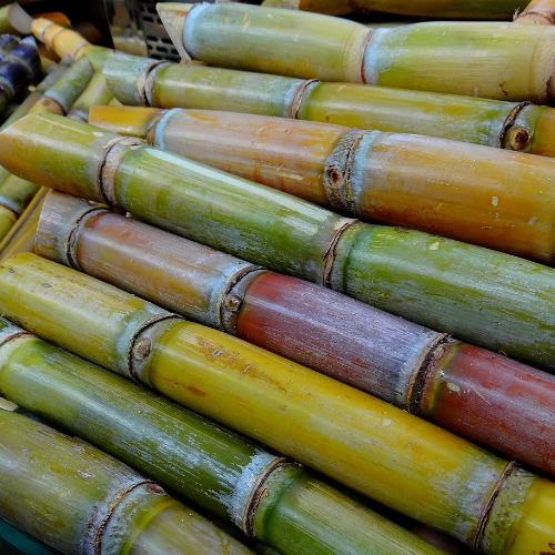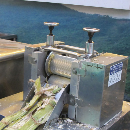 Los trozos de caña de azúcar se pasan por molinos para extraer el jugo dulce de la planta.